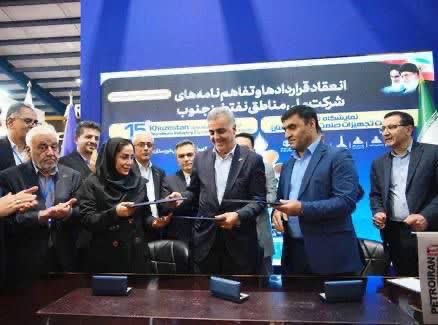 تفاهم نامه ۳جانبه میان شرکت ملی مناطق نفتخیز و شرکتهای پترو ایران و پتروفناوری دماوند در پانزدهمین نمایشگاه تخصصی ساخت تجهیزات صنعت نفت خوزستان امضاء شد.