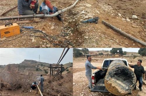 بازگشت آب شرب ۲۰ خانوار / بازسازی اضطراری خط انتقال آب روستای تمبی پایین پس از سیلاب