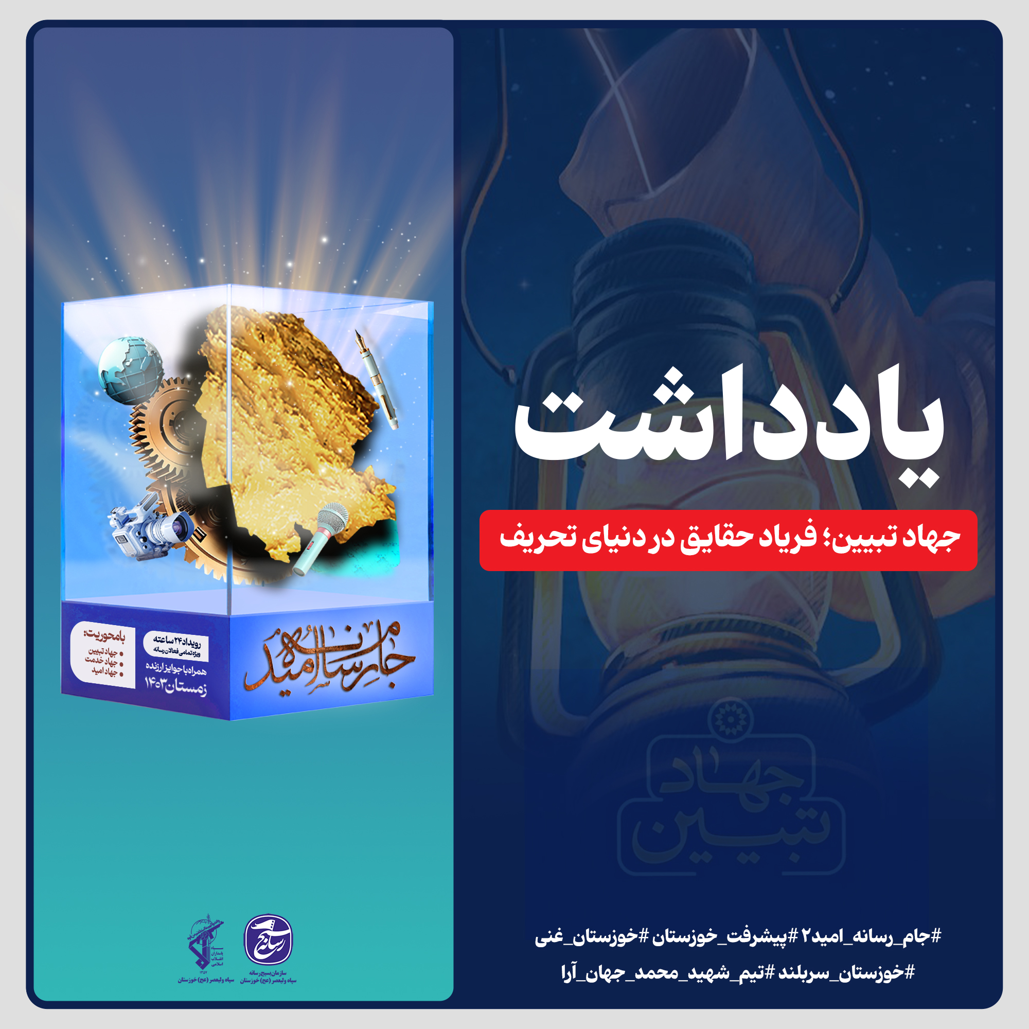 خوزستان، سرزمینی که تاریخش با مقاومت و ایستادگی گره خورده، امروز نیازمند جهادی نوین است: جهاد تبیین. در دنیایی که اطلاعات نادرست با سرعتی بی‌سابقه گسترش می‌یابد، وظیفه‌ی ماست که حقایق را فریاد بزنیم و اجازه ندهیم تحریف‌ها، تاریخ و فرهنگمان را زیر سوال ببرند. جهاد تبیین، تنها یک اقدام فرهنگی نیست؛ یک ماموریت تاریخی است که هر یک از ما در آن نقش داریم.