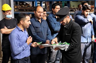 جمعی از خادمان بارگاه منور رضوی با حضور در کارخانجاتِ شرکت لوله سازی اهواز بیرقِ امام هشتم را میان کارکنانِ خطوط تولید گرداندند.