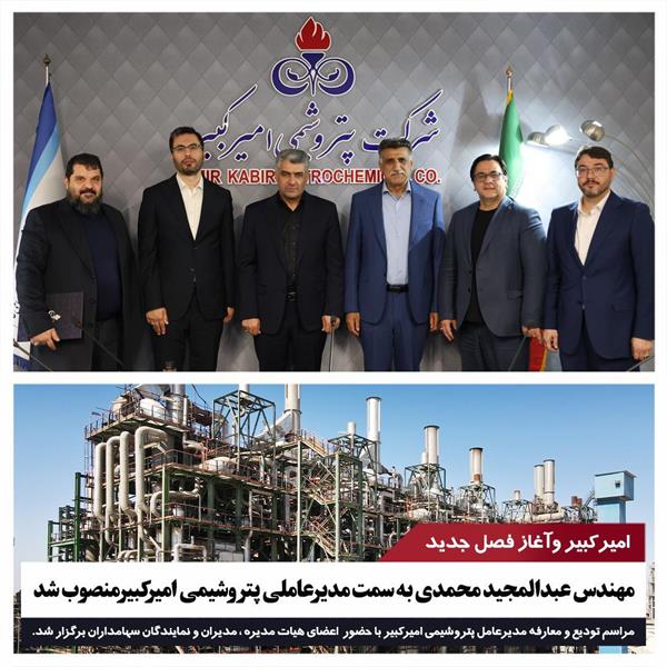 با عنایت به تعهد، تجربه و تخصص جنابعالی و نظر به صورتجلسه هیأت مدیره محترم شرکت به موجب این حکم به عنوان مدیر عامل شرکت پتروشیمی امیر کبیر ” منصوب می‌گردید.
