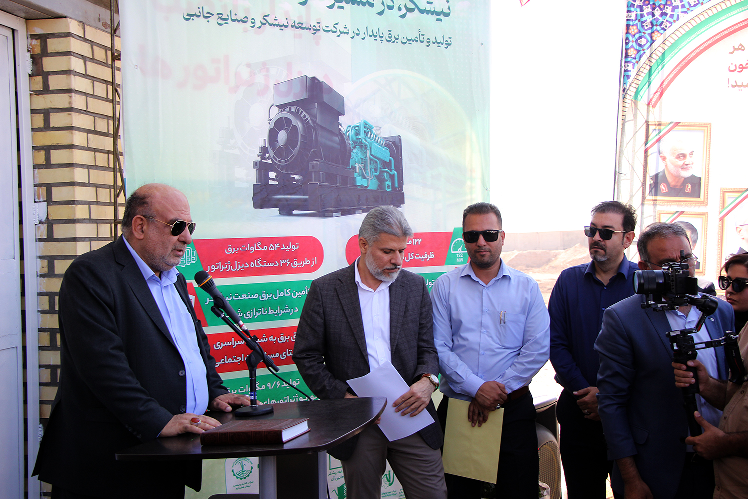 دکتر عبدعلی ناصری، مدیرعامل شرکت توسعه نیشکر و صنایع جانبی، در این مراسم با اشاره به تلاش‌های صورت‌گرفته برای عبور از ناترازی برق گفت: با راه‌اندازی هفت نیروگاه و نصب ۳۶ دستگاه دیزل‌ژنراتور در واحدهای نیشکری، نه‌تنها نیاز ۷۰ مگاواتی برق داخلی صنعت نیشکر تأمین شده، بلکه ۵۰ مگاوات برق نیز به شبکه سراسری تزریق می‌شود و روستاهای همجوار نیز از این ظرفیت بهره‌مند می‌شوند.