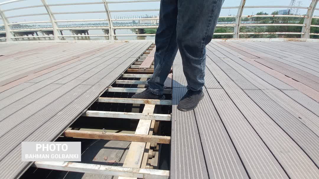 وضعیت نامناسب کفپوش پل طبیعت اهواز