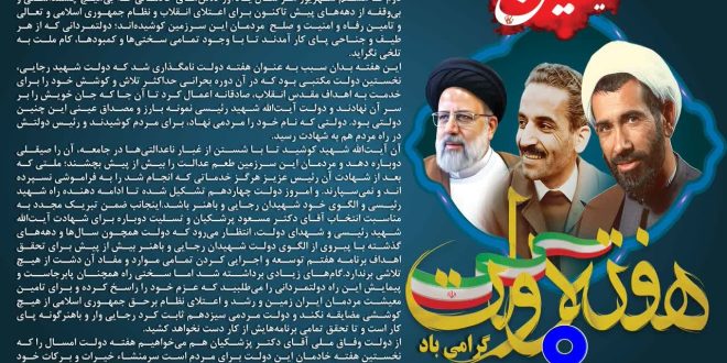 این هفته بدان سبب به عنوان هفته دولت نامگذاری شد که دولت شهيد رجايي، نخستين دولت مكتبي بود كه در آن دوره بحراني حداكثر تلاش و كوشش خود را براي خدمت به اهداف مقدس انقلاب، صادقانه اعمال كرد تا آن جا كه جان خويش را بر سر آن نهادند و دولت آیتالله شهید رئیسی نمونه بارز و مصداق عینی این چنین دولتی بود. دولتی که نام خود را مردمی نهاد، برای مردم کوشیدند و رئیس دولتش در راه مردم هم به شهادت رسید.