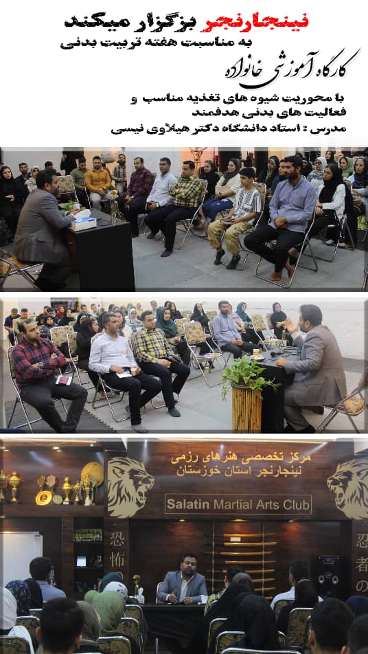 صبح خوزستان – امروز جمعه ۲۷ مهر به مناسبت هفته تربیت بدنی کارگاه آموزشی برای خانواده های هنرجویان رشته رزمی نینجارنجر با حضور شیهان مهرداد جلیلپور، اساتید و مربیان نینجارنجر خوزستان برگزار شد.