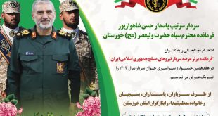 صبح خوزستان – در هفدهمین جشنواره سراسری جوان سرباز(حضرت علی اکبر(ع)) نیروهای مسلح که به میزبانی وزارت دفاع و پشتیبانی نیروهای مسلح در محل سالن اجلاس سران کشورهای اسلامی و با حضور ریاست ستاد کل نیروهای مسلح جمهوری اسلامی ایران سردار سرلشکر پاسدار محمد باقری و امیر نصیر زاده وزیر …