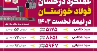 عملکرد درخشان فولاد خوزستان در ۶ ماه ابتدایی ۱۴٠۲/از سود خالص ۵ هزار میلیاردتومانی تا رشد ۴۲درصدی درآمد